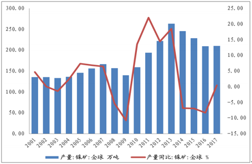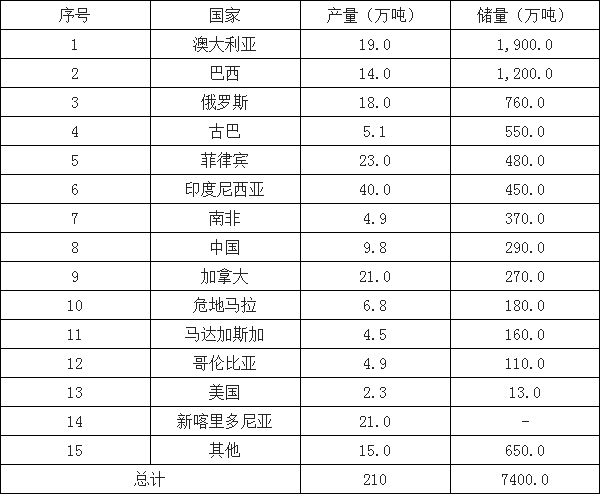 2017年世界鎳礦產(chǎn)量及儲量