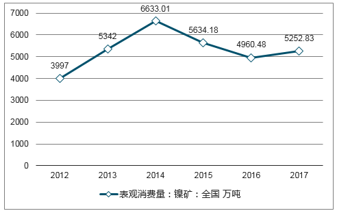 我國鎳礦表觀消費量(萬噸)