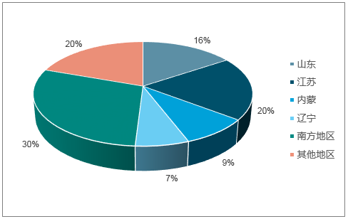 鎳鐵作為鎳礦的替代品,具有提高鋼的抗彎強度和硬度,并降低不銹鋼冶煉成本的優(yōu)點。在我國,鎳鐵行業(yè)起步較晚,但發(fā)展迅速,2012年我國鎳鐵產(chǎn)能達(dá)到800萬噸,并在往后幾年快速擴張,在2017年鎳鐵產(chǎn)能達(dá)4538.17萬噸,在這6年間年均增長率達(dá)42.14%。產(chǎn)能的分布主要在江蘇、山東及南方地區(qū),分別占比20%、16%和30%。