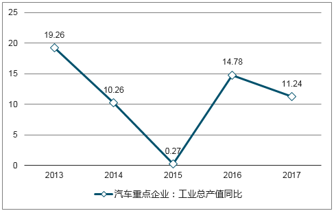 汽車重點企業(yè)工業(yè)總產(chǎn)值同比變化(%)